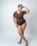 Scoop Neck Shapewear Bodysuit - Half Sleeves